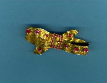 Mid 19th Century French 18ct gold bow brooch with natural Burma Rubies Stock No 3450 |