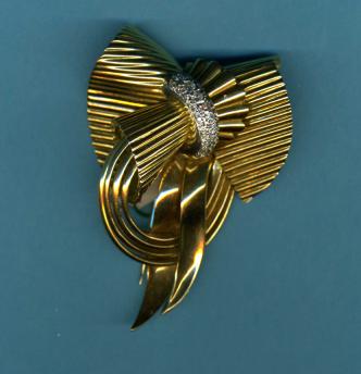 18ct French art deco brooch with pave diamonds Circa 1938 Stock No 7248 |